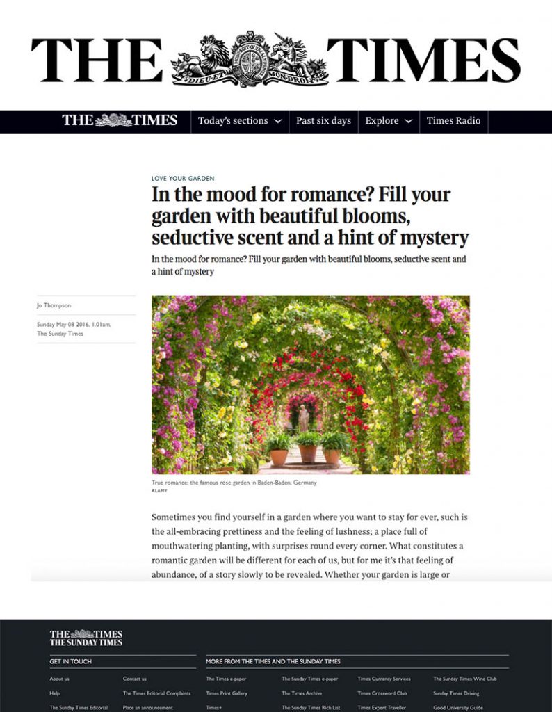 Sometimes you find yourself in a garden where you want to stay for ever, such is the all-embracing prettiness and the feeling of lushness; a place full of mouthwatering planting, with surprises round every corner. What constitutes a romantic garden will be different for each of us, but for me it’s that feeling of abundance, of a story slowly to be revealed. Whether your garden is large or small, city or country, rooftop or rolling fields, there are some key ideas to bear in mind if you’re aiming for that touch of romance.