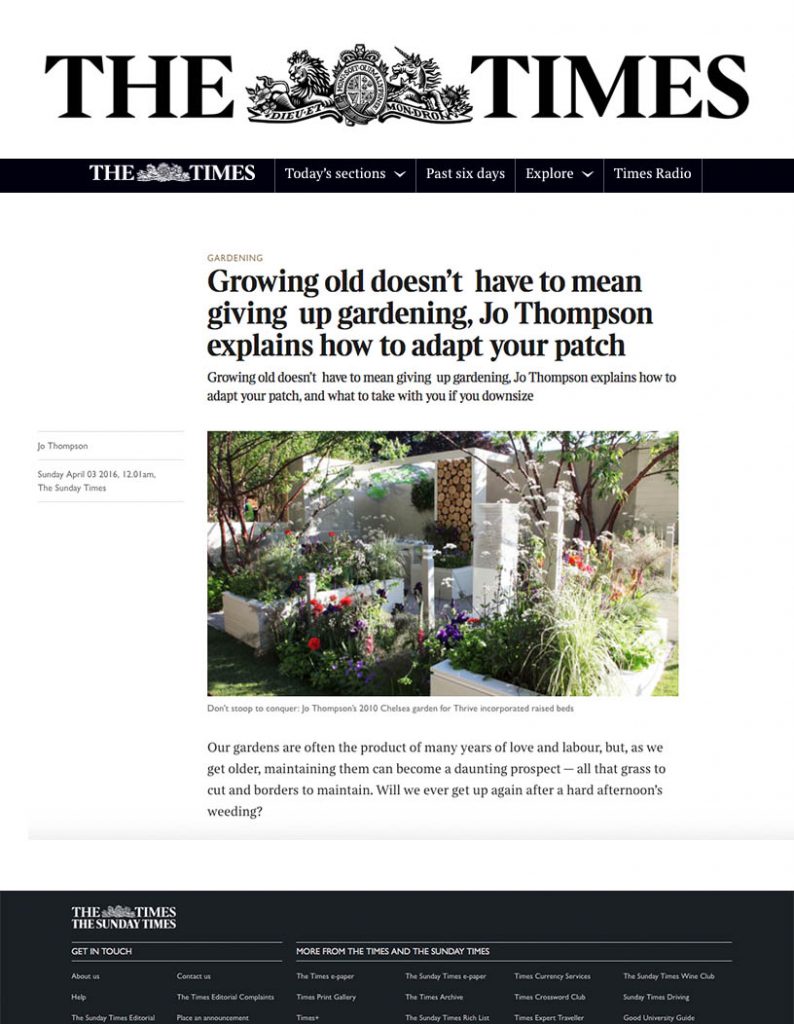 Growing old doesn’t have to mean giving up gardening, Jo Thompson explains how to adapt your patch.