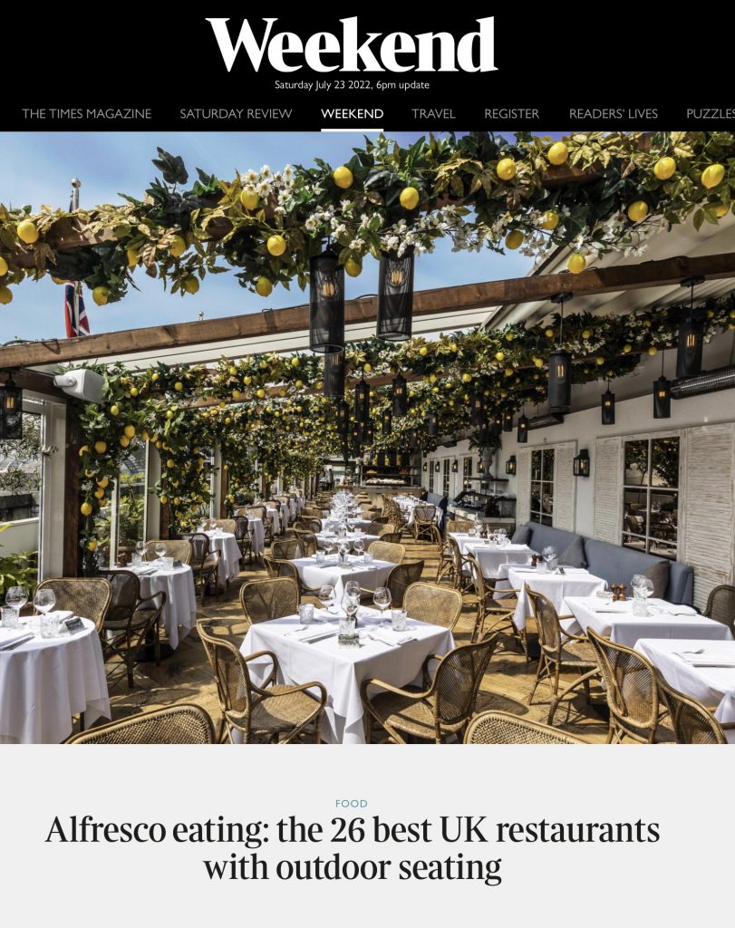 The Times announces top UK restaurants with the best outside space for dining. One of our projects, Water Lane, has been named. It is an idyllic walled garden with a vinery and a stunning collection of Victorian glasshouses on the Kent and Sussex borders.